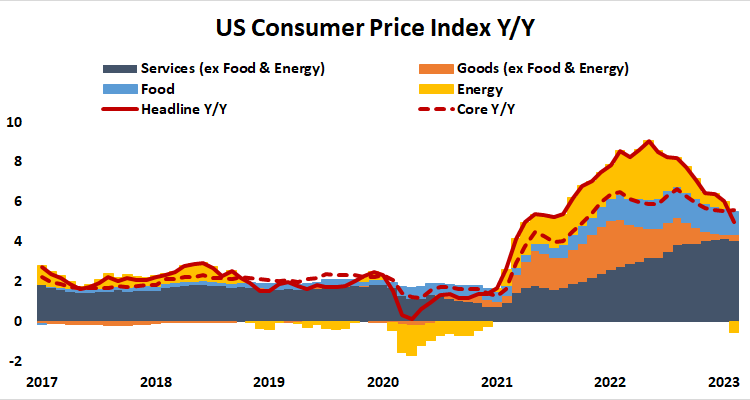 The Fed last week raised interest rates by 25 bps as expected but indicated a pause in the hiking cycle. Markets are currently pricing in 75 basis points of rate cuts by the end of the year, according to CME’s FedWatch tool. If the CPI data suggest price pressures rose faster than expected last month, it could lead to a reassessment of Fed rate cut expectations, especially after Friday’s stronger-than-expected US jobs data.