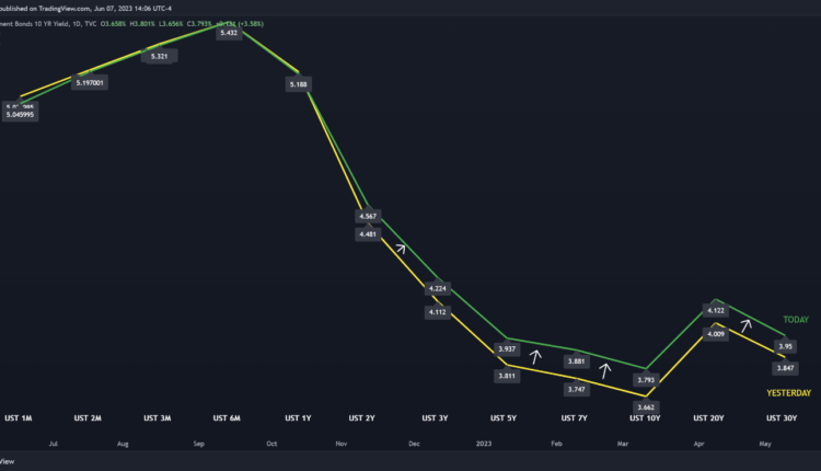 The chart below shows the Treasury curve shifted sharply upwards compared to the previous session.