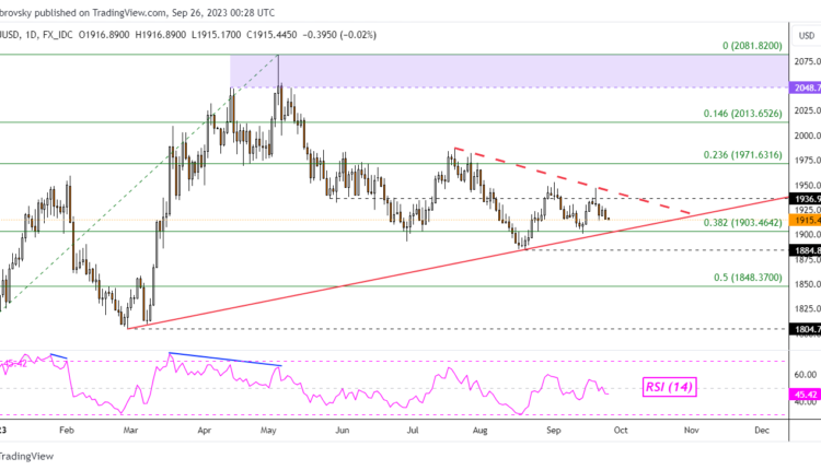 With each passing day, the yellow metal is running out of room to consolidate between support and resistance. As such, the direction of the breakout could be key for the coming trend. Below, watch the August low of 1884.89. Above, resistance seems to be the 23.6% Fibonacci retracement level of 1971.63.