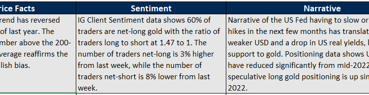 Ashighlighted last week, XAG/USD is weighed by a tough ceiling on a downtrend line from 2021. Despite the sharp rally since the end of 2022, the 14-week Relative Strength Index remains capped at around 60 – similar to the previous two rallies in Silver in 2021 and 2022.