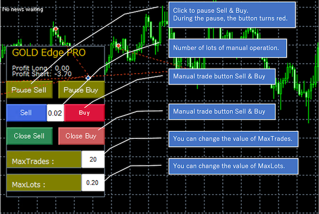 You can also Close manually. From the panel, you can change Max Trades and Max Lot Size.
