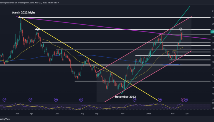 The idea that the terminal rate is within reach, coupled with growing speculation that the central bank will ease policy shortly thereafter, is likely to be bullish for non-yielding assets, including precious metals. This means that gold could remain in an upward trajectory over the medium term, especially if financial turmoil resurfaces and threatens to create systemic risks.