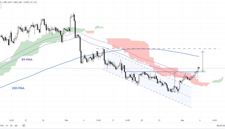 - XAU/USD is now attempting to break a crucial resistance which could expose the upside toward 1876.