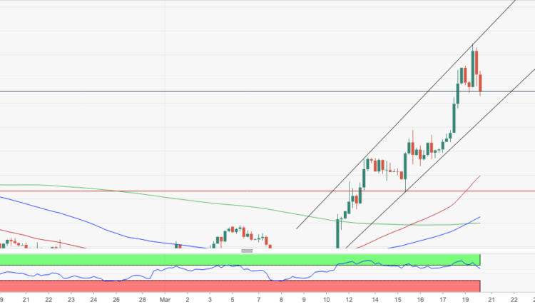 The XAU/USD pair is channeling higher on the 4-hour chart and despite a pullback over the last few bars it is likely to continue. The Relative Strength Index (RSI) momentum indicator is looking like it will exit overbought and if the curent 4-hour bar ends on a bearish note it will confirm a sell signal and the correction will probably continue lower. Support from the base of the channel at roughly $1,950-60, however, is likely to provide a floor for Gold price from where it can regroup and mount a recovery back up inside the channel. The short-term trend remains bullish and only a decisive break and close on a 4-hour timeframe below the lower channel line will turn the picture bearish.