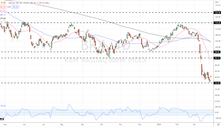 Risk markets are flat to marginally higher in quiet trade Tuesday as traders try and look past the recent banking turbulence. The First Citizen partial takeover of SVB over the weekend and the seemingly unlimited amounts of US dollar liquidity that have been made available have calmed markets and traders are now looking ahead to important US growth and inflation data later this week. While the banking sector has stabilized, the rebound is tepid, and the space as a whole continues to nurse sizeable losses since the sell-off accelerated earlier this month.