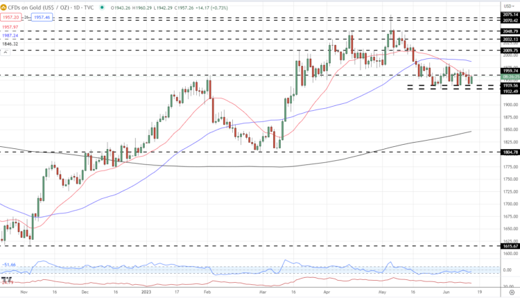 Ahead of today’s meeting, gold is nudging $1,960/oz. aided in part by today’s weaker-than-expected PPI release. The precious metal has tested, and rejected, a support zone on either side of $1,935/oz. and it will take a strong hawkish surprise at tonight’s meeting to press through this level. However, a hawkish outlook cannot be overlooked as Fed chair Powell will want to leave himself with the maximum flexibility for the next few meetings.