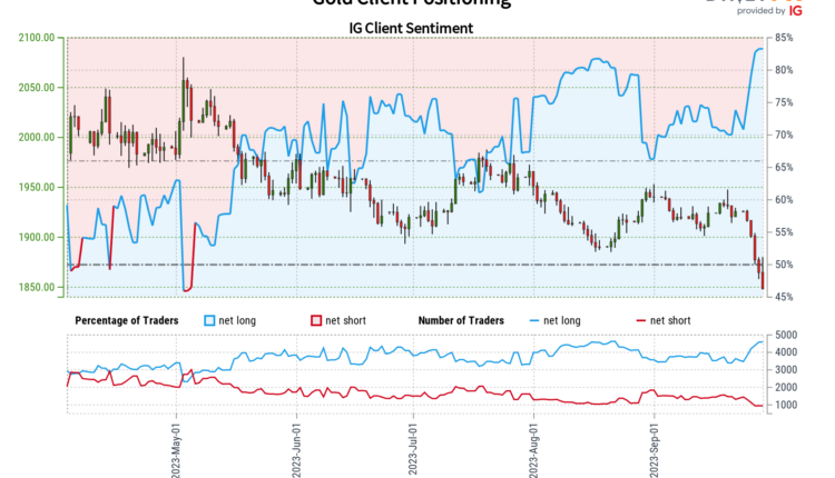 Gold prices sank about 4 percent last week. To give some context, we have not seen this kind of performance since June 2021. Meanwhile, retail traders continue to increase their upside exposure in XAU/USD. This can be seen by looking at IG Client Sentiment (IGCS), which frequently worked as a contrarian indicator. As such, things may not be looking too good for gold as the new week begins.