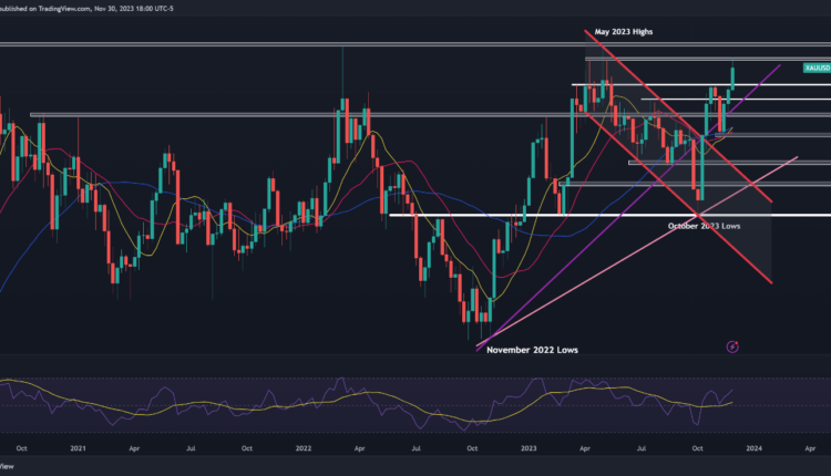 The Nasdaq 100 soared in November, rising more than 10% and posting its largest monthly gain since July 2022, when it advanced 12.5%. Despite the strong upward momentum, the tech index has started to stall out this week, with prices struggling to clear technical resistance near 16,100.