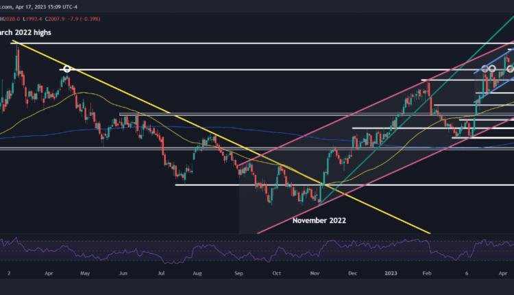 - Gold prices retreat and probe technical support area near $2,000 as U.S. dollar extends recovery