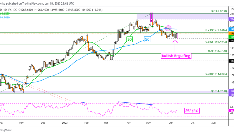- XAU/USD Bullish Engulfing in focus as prices test support