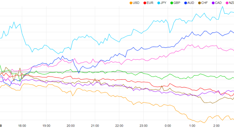 Currency Strength Chart: Strongest – JPY, Weakest – USD.