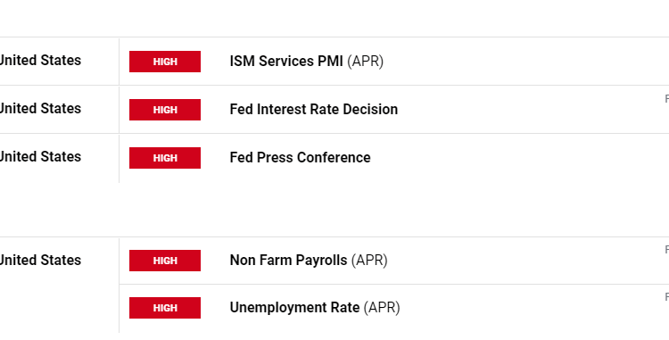 • The Fed May meeting's monetary policy decision and the U.S. labor market report will steal the limelight next week
