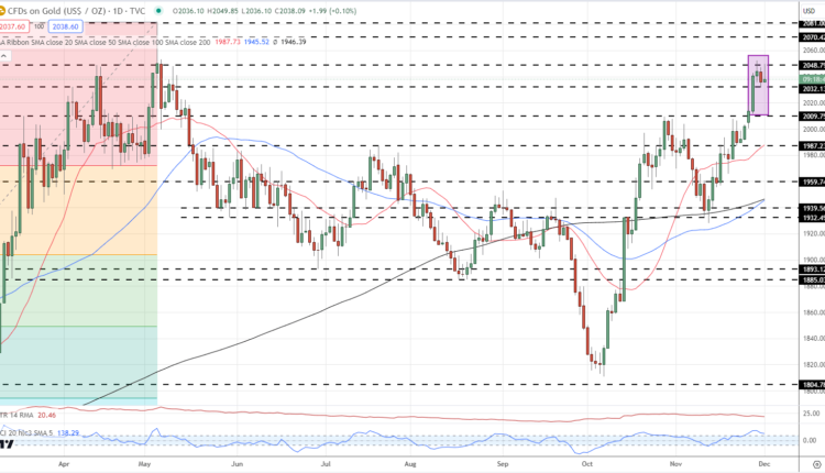 Gold (XAU/USD) Rejects $2,050/oz. Ahead of Fed Chair Powell’s Thoughts