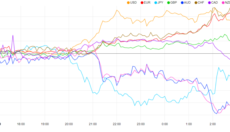 Currency Strength Chart: Strongest – USD, Weakest – AUD.