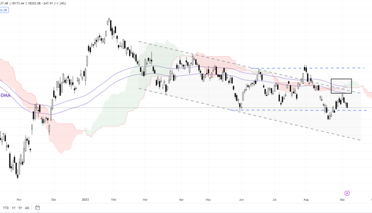 Singapore’s FTSE Straits Times Index continues to trend within a narrow range of 3000-3400. Barring the brief low of 2968 created in Q4-2022, the index appears to have set a solid low around 2950-3050, which includes the 200-week moving average. As mentioned in the previous update, a break below is by no means imminent – it could well rebound as it has done multiple times since 2021. See “Asian Indices Feel the Heat of Rising Yields: Hang Seng, Kospi, Straits Times Index Setups,” published August 22.