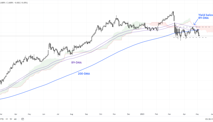 In terms of monetary policy outlook, the Fed indicated a pause at its meeting yesterday is likely to keep a lid on USD and Treasury yields, unless data suggests otherwise in the coming week. Meanwhile, the Bank of Japan last week kept the ultra-loose policy settings unchanged. If risk sentiment remains in check due to the uncertainty with regard to the US debt ceiling and the banking sector, USD/JPY could move toward the lower end of the well-established range.