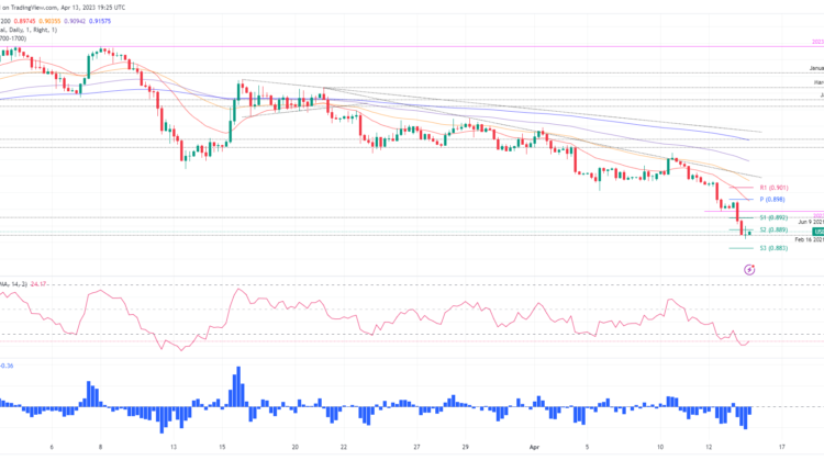 USD/CHF extended to new year-to-date (YTD) lows for the second straight day at 0.8859, though it rebounded slightly but remained below the psychological resistance at 0.8900. Fundamentals pointing the US economy toward a strong deceleration and a possible US Federal Reserve (Fed) pivot are the main reasons pressuring the American Dollar (USD). Therefore, the USD/CHF is trading at 0.8882 after hitting a high of 0.8974.