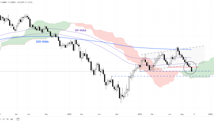 EUR/USD’s break last week below the upper edge of a rising channel from early 2023, coinciding with the May low of 1.0630, confirms the medium-term upward pressure has faded. The pair is now testing the January low of 1.0480 – a break below would pose a serious threat to the medium-term uptrend that started late last year. Subsequent support is on the lower edge of the Ichimoku cloud on the weekly chart (now at about 1.0300). On the upside, EUR/USD needs to break above the September 20 high of 1.0735 at minimum for the immediate downside risks to dissipate.For a discussion on fundamentals, see “Euro Could Be Due for a Minor Bounce: EUR/USD, EUR/JPY, EUR/GBP, Price Setups,” published September 19.