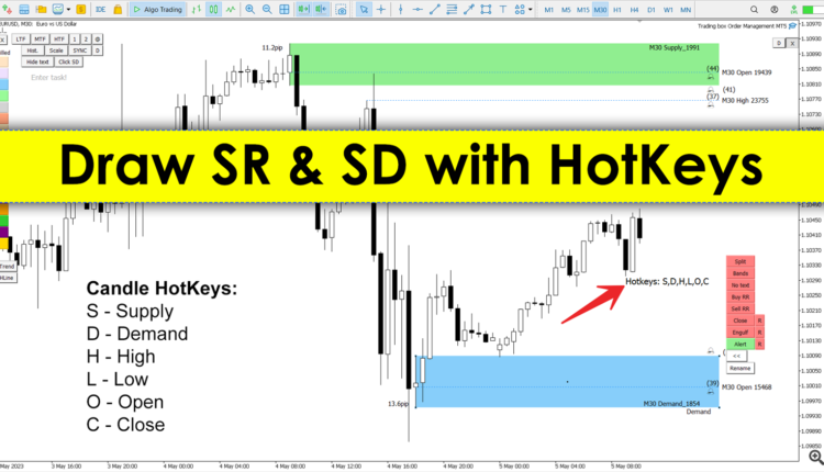 How to draw support and resistance lines with Hotkeys indicator – Charts – 5 May 2023