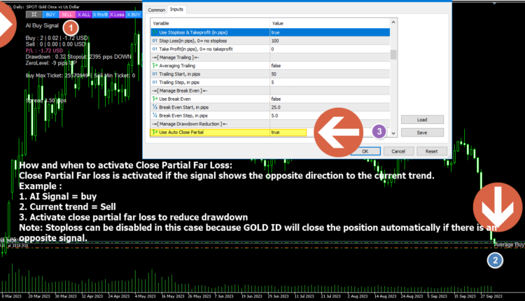 3. Activate close partial far loss to reduce drawdown