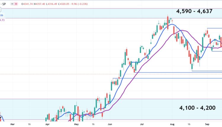 The S&P 500 index crashed through prior supports at 4,335 and 4,328 last week, and it seems quite likely that 4,300 – the resistance level from early June – won’t hold either. Unless we see a sudden move higher this week, expect the index to drop back to at least to the 4,100 to 4,200 support range in October.