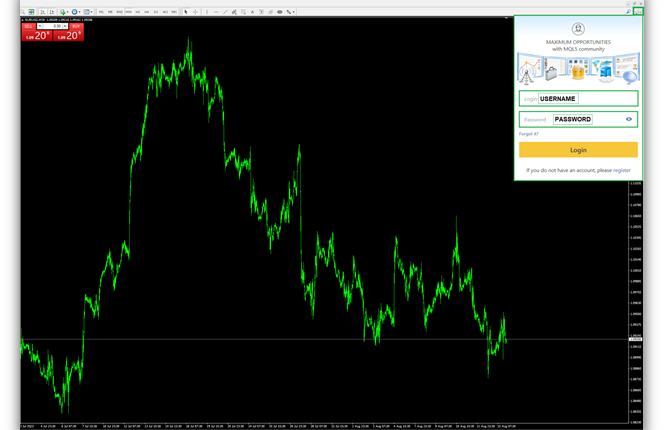Log in to Metatrader From the upper right part, log in to your MQL5 site account (using “username” and “password”).