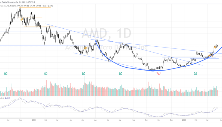 Bullish. According to the Wyckoff method, AMD has just broken out from the short-term Wyckoff accumulation phase and back up (BU). It is now in phase E to challenge the $100 axis, which could form a larger accumulation structure. The last 3 days are showing rejection tails with localized increase in volume. Nevertheless, the bullish price structure is still intact and will likely see more rally up to test immediate targets of $110 and $122.50 subsequently as supported by the rounding bottom pattern tweeted below.