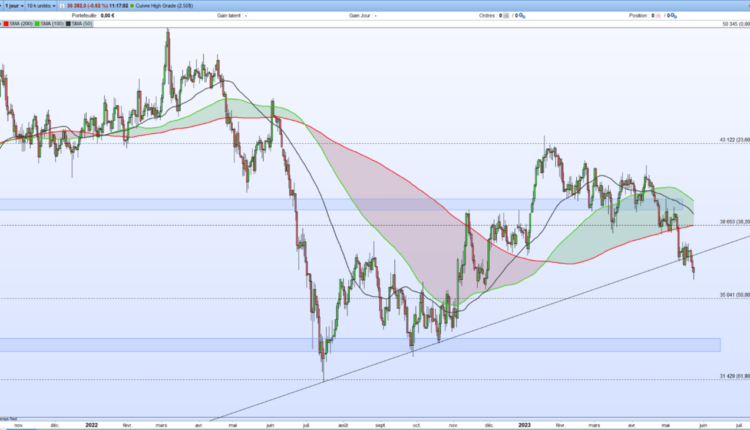 The price of copper is correcting by more than 15% since the beginning of the year and after having reached an important objective on the lows observed since January 4 and having held on the 2020/2022 oblique support, it is accelerating downwards.