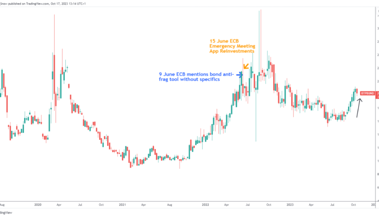 BTP-BUND Spread (Italian 10-year yield – German 10-year yield) Weekly Chart