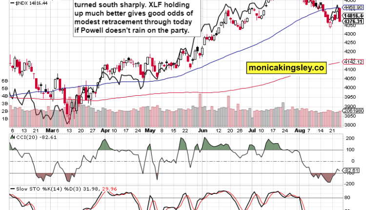 Stocks duly reversed the NVDA earnings and guidance euphoria, breaking even 4,425 with ease. Even the old 4,385 support from from many weeks ago, was reached – I didn‘t count on such an easy bearish ride, but the selling picked extraordinary steam regardless of a not-so-bad day in Treasuries. Odds are thus not only for a crawl back to 4,407, but also to 4,415 today, still before Powell.