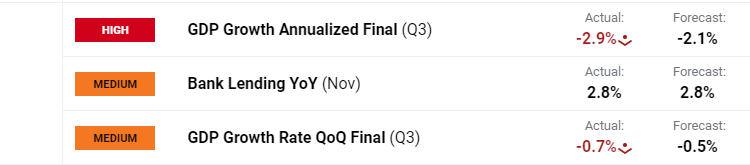 Japanese (final) Q3 data was revised lower as inflation appeared to be negatively impacting spending in the region. Inflation has been above the Bank of Japan’s (BoJ) 2% target for more than a year but officials require more convincing before putting an end to years of stimulus, spearheaded by negative interest rates.