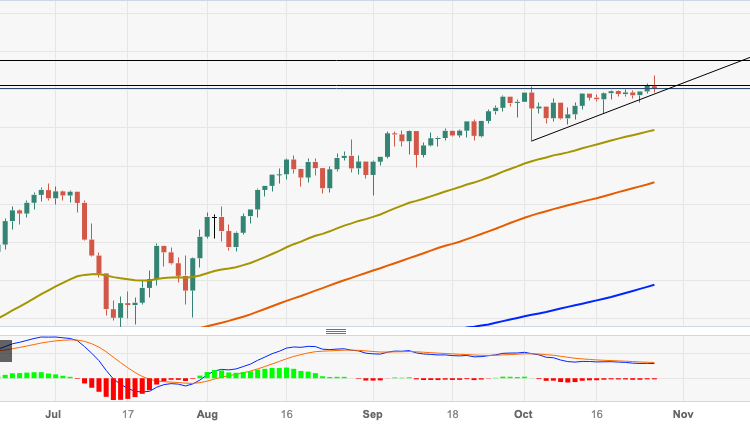 The Moving Average Convergence Divergence (MACD) momentum indicator is showing bearish divergence with price when compared with the October 3 high. This happens when price makes a higher high, but momentum fails to follow suit. This is indicative of underlying weakness in the upmove. This nuances the bullish analysis and increases the risk the triangle breakout may be ‘false’.
