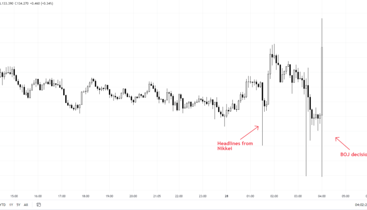 About an hour before the release of the BOJ rate decision, USD/JPY had been volatile after Nikkei reported that the BOJ will forego revising YCC but was considering changing expression in forward guidance regarding the possibility of easing policy further.