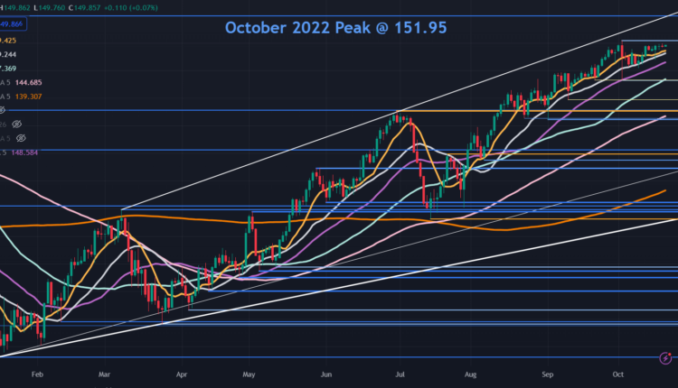 The Japanese Yen is flirting around recent lows with USD/JPY poking above 150 in early Asian trade but unable to overcome the 150.16 high seen earlier this month.