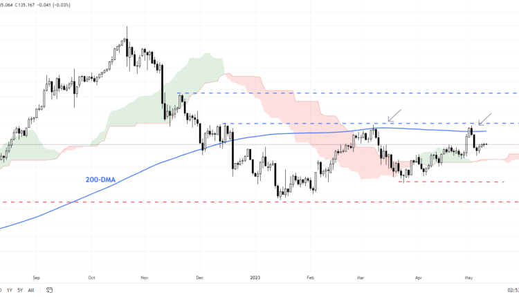 From a monetary policy perspective, the market expects the US Federal Reserve to cut interest rates by 75 bps by the year-end after the US central bank last week indicated a pause in the tightening cycle. Fed easing expectations could keep USD/JPY’s upside capped. The Bank of Japan last month kept the ultra-loose policy settings unchanged, but with Japan's inflation well above BOJ’s target, it could be a matter of time before the Japanese central bank tweaks policy.For more discussion on BOJ policy, see “Japanese Yen Drops as BOJ Keeps Policy Settings Unchanged: Where to for USD/JPY?”, published April 28.