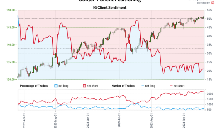 The Japanese Yen weakened against the US Dollar in the aftermath of the Federal Reserve interest rate decision, where Chair Jerome Powell alluded to a ‘higher for longer’ monetary policy approach. In response, retail traders have become less bullish about USD/JPY. This can be seen by taking a look at IG Client Sentiment (IGCS), which typically functions as a contrarian indicator.