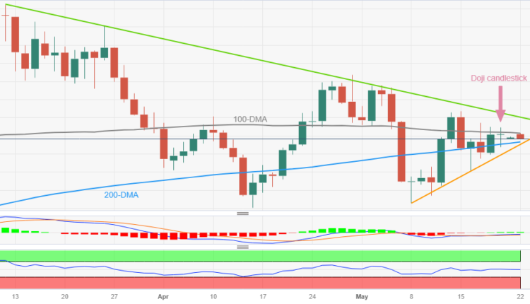 Justifies Friday’s Doji to drop towards 200-DMA below 1.3500