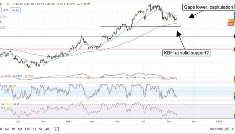 The technical action has KBH pulling back sharply, forming a gap and potentially in capitulation. In this scenario, the market should continue to build support at or near the $46 level before moving higher. If not, the market could correct to $44 or lower, where it would present an even deeper value. The indicators are weakening and suggest a deeper downturn is possible, but they are also consistent with significant entry points in 2022 and early 2023.