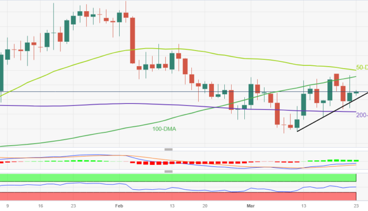 NZD/USD grinds higher past 0.6200, mildly bid near 0.6225 during early Thursday, as it defends the Federal Reserve (Fed) inspired gains despite the latest pullback from the 100-DMA.