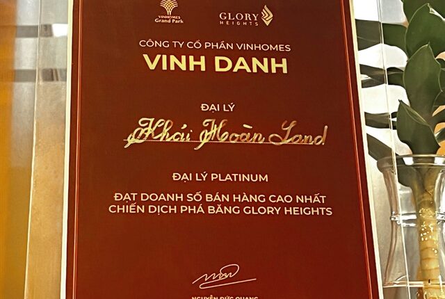 Với kỷ lục bán hàng ấn tượng này, Khải Hoàn Land được chủ đầu tư vinh danh là đại lý Platinum đạt doanh số bán hàng cao nhất chiến dịch phá băng Glory Heights trong đợt tổng kết kinh doanh vừa qua. Giải thưởng này còn giúp Khải Hoàn Land củng cố vững chắc vị trí top đầu đơn vị bán hàng xuất sắc, khẳng định uy tín và vị thế là đại lý Platinum Vinhomes; đồng thời là bước tiến quan trọng trong mối quan hệ hợp tác chiến lược với Chủ đầu tư Vinhomes.