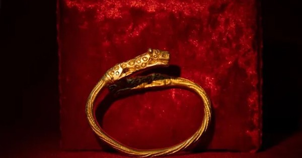 Nhiều hiện vật cổ đại được thu thập từ các gò chôn cất của người Sarmatian có hình động vật, chẳng hạn như chiếc nhẫn đeo tay bằng vàng có hình con báo. (Ảnh: Chính phủ Kazakhstan)