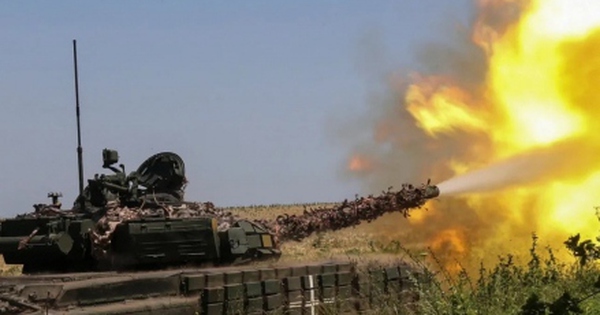 Xe tăng Ukraine nã pháo về vị trí quân Nga ở khu vực Kharkov. Ảnh: Reuters.