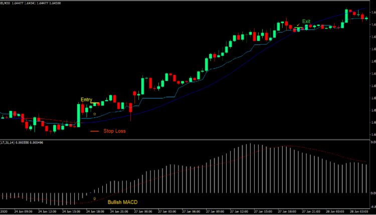 • Close the trade as soon as the Kijun-sen+ line crosses below the Mega Trend line.