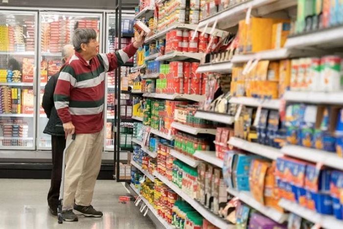 Người dân mua sắm tại siêu thị ở San Mateo, California, Mỹ. (Ảnh: THX/TTXVN)
