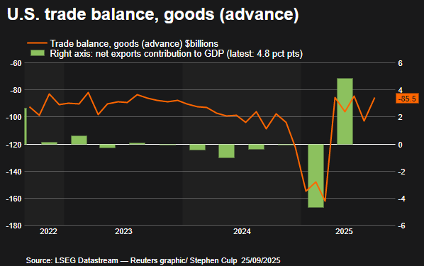 Một yếu tố chính đóng góp vào con số GDP ấn tượng này là sự thu hẹp mạnh mẽ của thâm hụt thương mại. Trong quý 2, sự suy giảm của thâm hụt thương mại giảm đã giúp tăng trưởng GDP có thêm 4.83 điểm phần trăm. Điều này xảy ra sau khi nhập khẩu sụt giảm mạnh, một phản ứng ngược lại so với đợt tăng vọt trong quý 1 khi doanh nghiệp đã đẩy mạnh nhập khẩu để tránh các biện pháp thuế quan mới.
