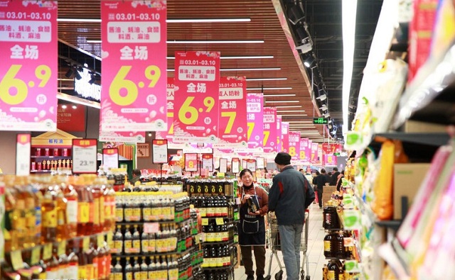 Người tiêu dùng mua sắm tại siêu thị ở Giang Tô, Trung Quốc. (Ảnh: THX/TTXVN)