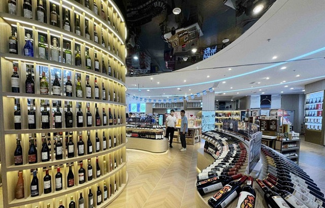 Gian hàng bày bán rượu tại siêu thị thành phố Trùng Khánh (Trung Quốc). (Ảnh: Công Tuyên/TTXVN)