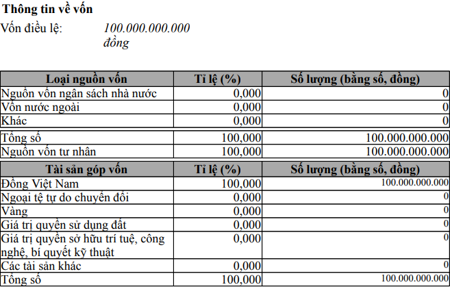 Cơ cấu vốn điều lệ của Quốc tế AMPT Việt Nam