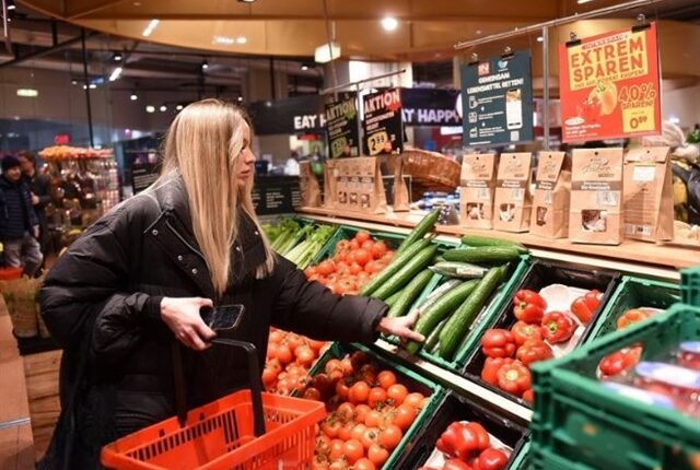 Người dân mua sắm tại siêu thị ở Vienna, Áo. (Ảnh: THX/TTXVN)