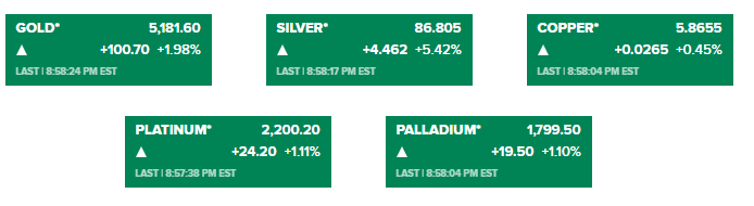 Hợp đồng vàng tương lai tăng gần 2%, vượt 5,180 USD/oz. Trong ngày 21/02, ông Trump cho biết sẽ áp mức thuế toàn cầu 15% nhằm duy trì các biện pháp bảo hộ thương mại, sau khi Tòa án Tối cao ra phán quyết chống lại việc ông sử dụng quyền khẩn cấp để áp thuế đối ứng. Đồng USD suy yếu sau quyết định này cũng khiến vàng trở nên rẻ hơn đối với nhiều nhà đầu tư nắm giữ các đồng tiền khác.